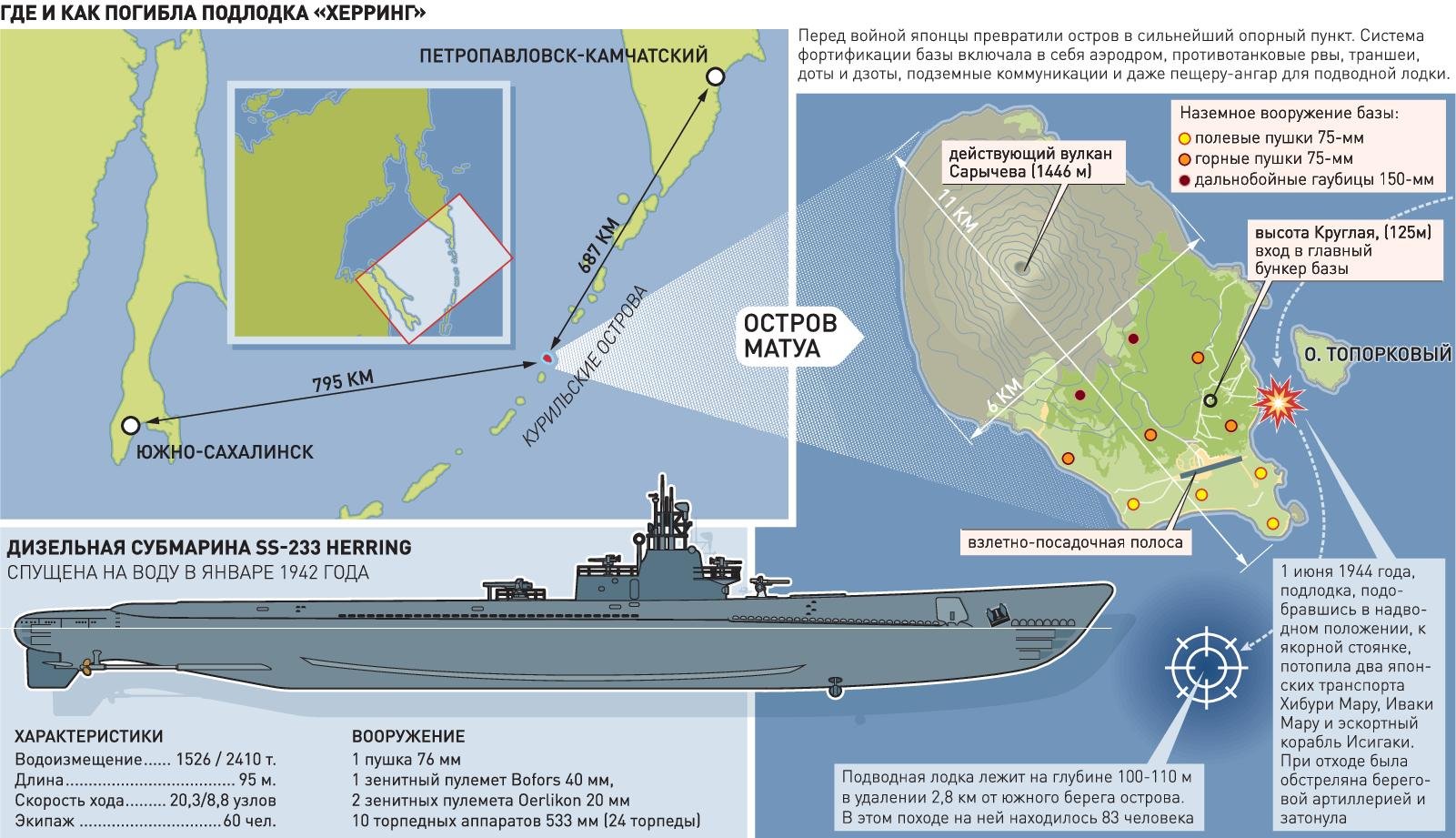 Крейсерскую подлодку американского флота SS-233 Herring (с англ. "Херринг" - "Сельдь") мы нашли два года назад у побережья острова Матуа, что в центре Курильской гряды.