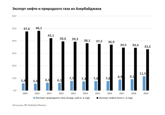 Вот тут как раз выходят на арену нефтегазовые запасы Азербайджана, как фактор обеспечения экономического и военно-технологического преимущества одной стороны конфликта над другой. И хотя с 2014 г. поставки азербайджанской нефти на мировой рынок постепенно снижаются, происходит наращивание объемов экспорта природного газа, что позволяет поддерживать экономику страны. Рост экспорта газа, как показывают последние данные турецкого энергетического регулятора EPDK, уже активно негативно влияет на поставки российского газа в Турцию, фактически заменяя их.