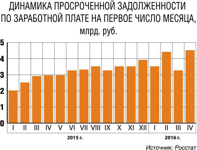 Мы постоянно работаем в этом направлении, но надо сказать, что последний год, прошлый год, и начало этого года с учётом непростой экономической ситуации мы наблюдаем, что задолженность по заработной плате росла, и росла перед бо?льшим количеством работников. Если на начало прошлого года это было всего 2,5 миллиарда рублей, в принципе это была незначительная сумма, то к концу года она составила 3,5 миллиарда рублей, на 1 апреля этого года это уже почти 4,5 миллиарда рублей. Мы постараемся принимать все необходимые меры.