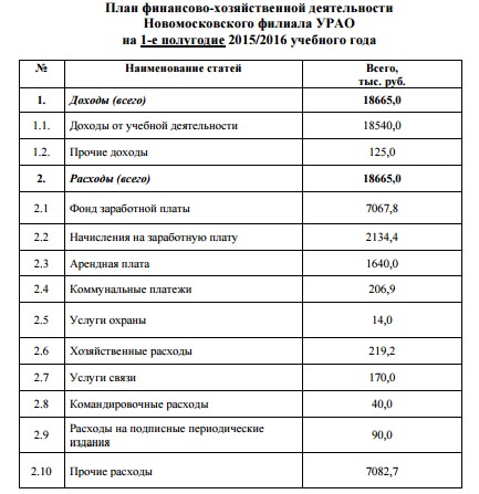 Вот, к примеру, план финансово-хозяйственной деятельности только одного филиала этого университета: