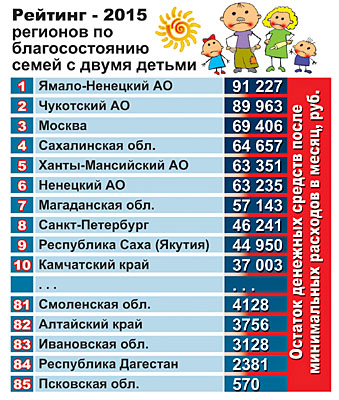 Причем разрыв между самыми бедными и самыми богатыми регионами - почти в 200 раз! Так, в Ямало-Ненецком автономном округе после необходимых трат у семьи остается 91 тыс. 227 руб. В Москве - 69 тыс. 406 рублей.
