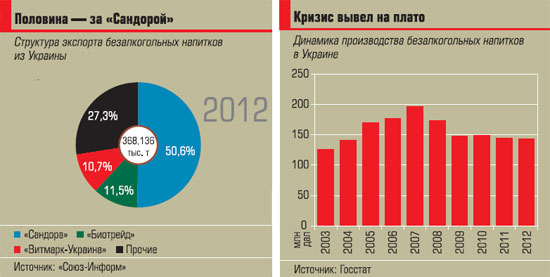 В Украине в 2012 году объемы производства шипучки составили 143 млн дал и, по данным Госстата, стали самыми низкими за последние восемь лет. «Рынок безалкогольных напитков (БАН) начал падать с кризисного 2008-го. Небольшая стабилизация рынка наблюдалась в 2010 году из-за аномально жаркого лета», — сообщил начальник отдела маркетинга рынка безалкогольных напитков компании «Оболонь» Валерий Полушко. Он уверен, что экономических и социально-демографических предпосылок для роста рынка нет, хотя за первые четыре месяца 2013-го производство БАН в Украине увеличилось на 13% по сравнению с аналогичным периодом прошлого года.
