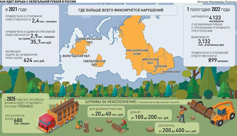 С 2025 года все лесовозы должны будут установить систему ГЛОНАСС. Будут данные координат о лесосеках и данные, где находится техника. Если техника находится где-то в лесу, где лесосеки никакой нет, это может быть сигналом для лесной охраны и правоохранительных органов, отмечает Абрамов.
